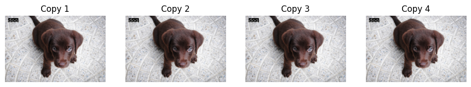 for i,ax in enumerate(axs): show_image(im2, ax=ax, title=f'Copy {i+1}')