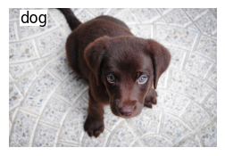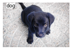 ax = show_image(im2, text='dog', figsize=(3,3))